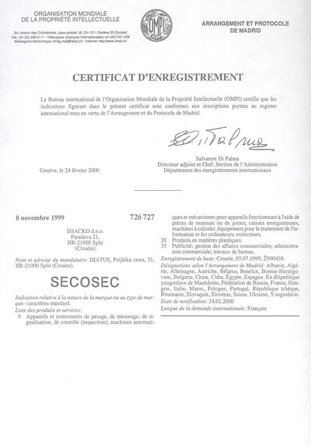 INT. PROTECTION OF THE SECOSEC TRADEMARK